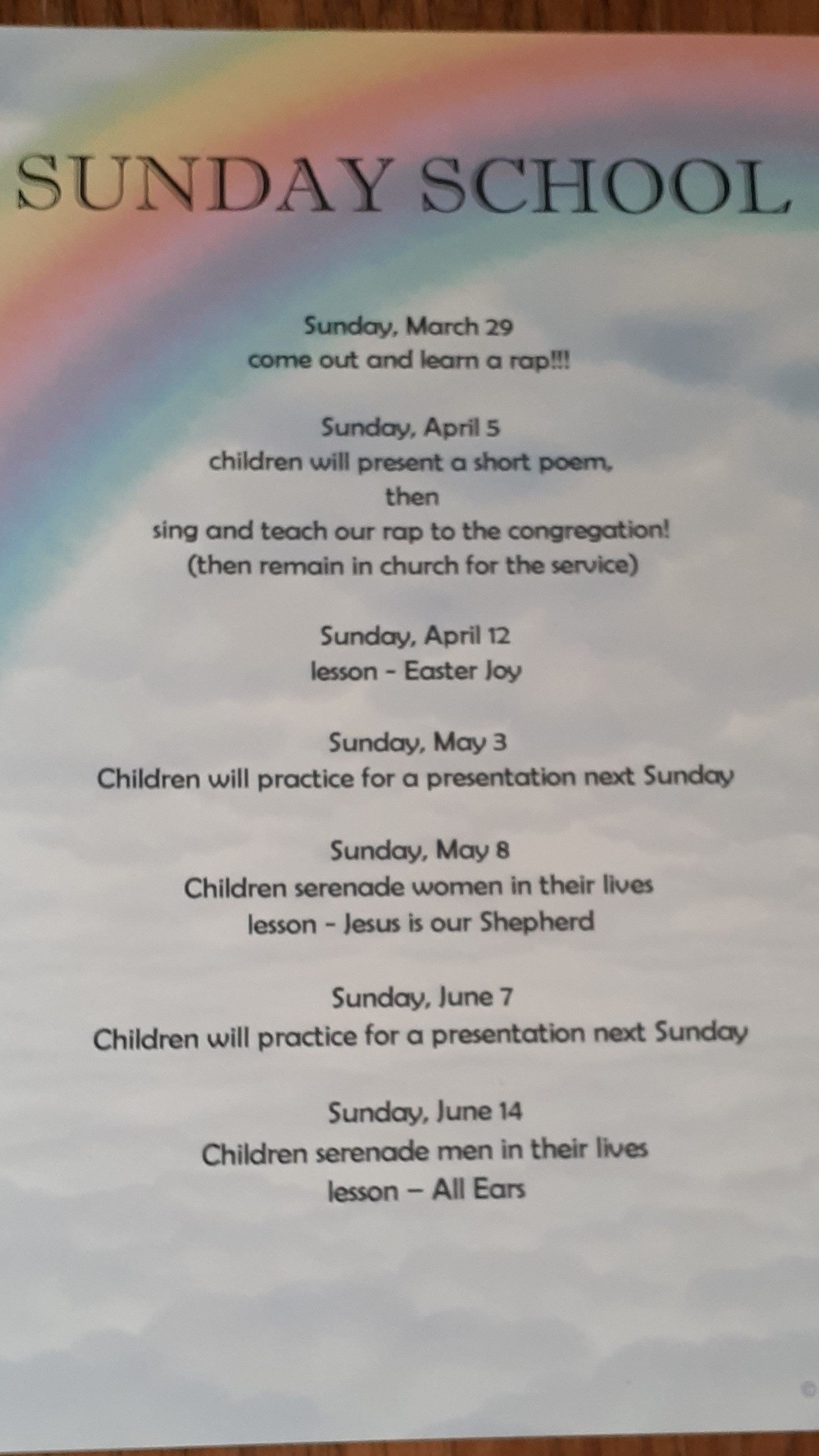 April Friendship Friday will also be moved to