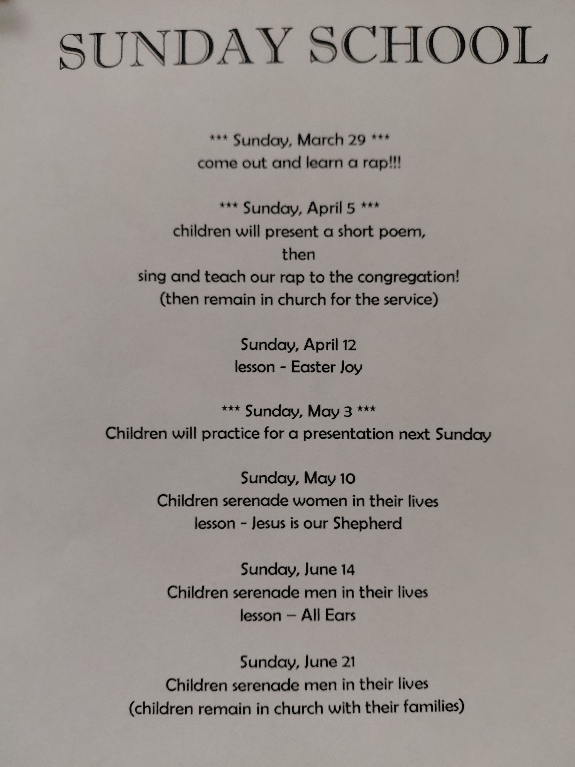 April Friendship Friday will also be moved to